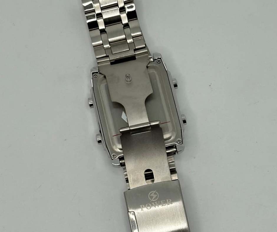 Includes analog digital display, date, alarm, and stopwatch. Perfect combination of style and functionality.